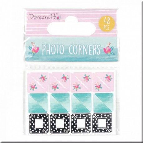Photo corners. Happy everything. Dovecraft planner accessory. 48 pegatinas con forma de photo corner para enmarcar las fotos de tus proyectos de scrapbooking. Cada pack tiene tres diseños diferentes.