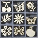 9 decoraciones de madera. Temática frutas, flores y mariposas
