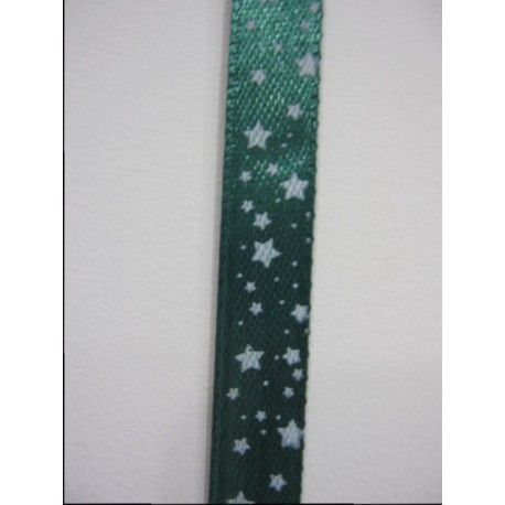 Lazo de satén verde con estrellas, 1cm. 1 m