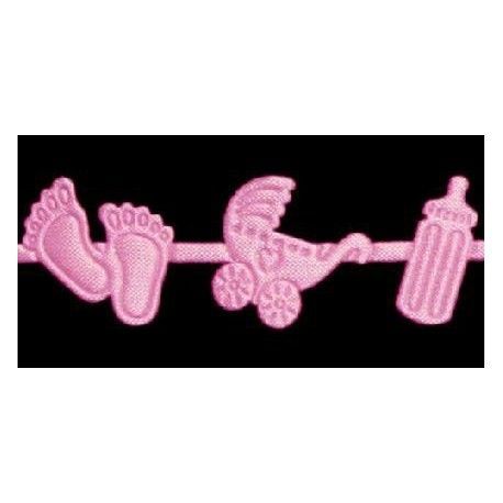 Cinta troquelada: juguetes bebé. Rosa. 16 mm x 1 m.