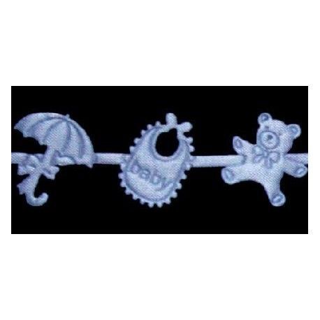 Cinta troquelada: juguetes bebé. Azul claro. 16 mm x 1 m.