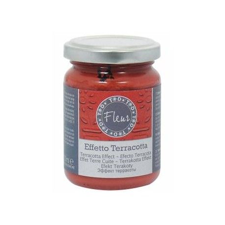 Para uso interno y externo. Pasta de efecto terracota con base de agua. Se puede utilizar sobre cartón, cerámicas, madera, piedra, plástico, metal y muchas otras superficies. Aplicar con pincel, esponja o incluso espátula (para obtener efecto con relieve). Para imitar lo mejor posible el efecto de la terracota real, hay que estar atento al secado y después lijar conuna lija fina. Secado: unas 24 horas, dependiendo del espesor de la capa aplicada. Los instrumentos utilizados se limpian con agua.