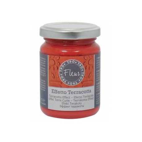 Para uso interno y externo. Pasta de efecto terracota con base de agua. Se puede utilizar sobre cartón, cerámicas, madera, piedra, plástico, metal y muchas otras superficies. Aplicar con pincel, esponja o incluso espátula (para obtener efecto con relieve). Para imitar lo mejor posible el efecto de la terracota real, hay que estar atento al secado y después lijar conuna lija fina. Secado: unas 24 horas, dependiendo del espesor de la capa aplicada. Los instrumentos utilizados se limpian con agua.
