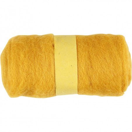 Lana de gran calidad proveniente de Nueva Zelanda perfecta para cardar o fieltrar de color amarillo. Con la técnica del Needle Felting disfrutarás creando desde la nada figuras, cuadros... ¡Sólo necesitas: lana, agujas de fieltrar, almohadilla de foam, imaginación y ganas!