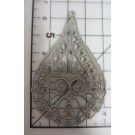 Decoración de metal plateada. Guitarra con filigranas. 2 x 5 cm. Fabscraps