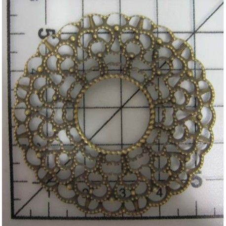 Decoración de metal plateada. Colgante redondo con ramas talladas. Ø 4 cm. Fabscraps. Para decorar tus creaciones de scrapbooking