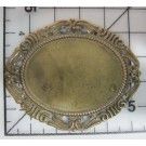 Decoración de metal dorada. Marco ovalado con volutas pequeñas. 3 x 2 cm. Fabscraps