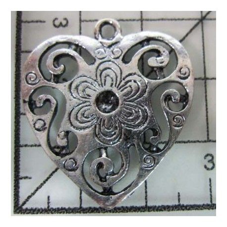 Decoración de metal plateada. Colgante redondo con flores talladas. Ø 5 cm. Fabscraps. Para decorar tus creaciones de scrapbooking