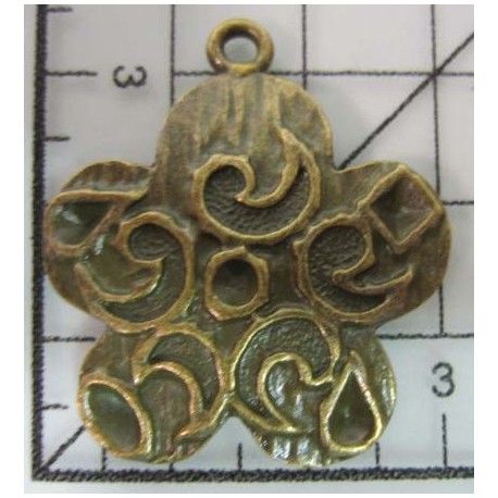 Decoración de metal dorada. Flor con grabados lineales. 3 x 3 cm. Fabscraps. Para decorar tus creaciones de scrapbooking