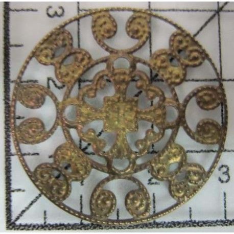 Decoración de metal dorada. Colgante hoja tallada. 3 x 2 cm. Fabscraps. Para decorar tus creaciones de scrapbooking