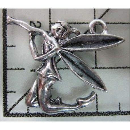 Decoración de metal plateada. Colgante Hada. 2 x 2 cm. Fabscraps. Decoraciones originales y diferentes para decorar todas tus creaciones, ya sean de scrapbooking, modelado, bisutería, manualidades lo que tu imaginación desee.