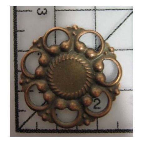 Decoración de metal plateada. Circulo con grabados. Ø 5 cm. Fabscraps. Para decorar tus creaciones de scrapbooking