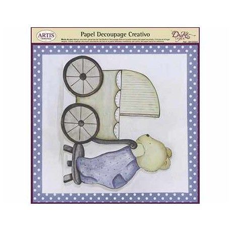 Papel Decoupage. Osito con carrito de bebé, medida 32x31