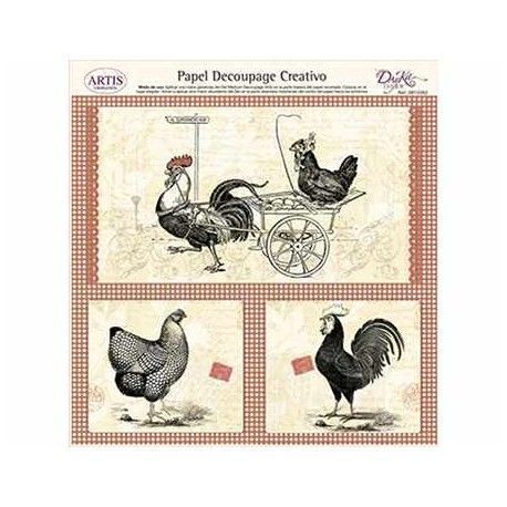Papel Decoupage. Gallina y gallo, medida 32x31