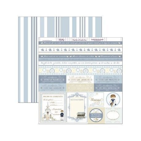 Papel Scrapbooking. SCP-306 Comunión 2019 Dayka. Niño vestido de marinero y atrapasueños con frase: Mi Primera Comunión