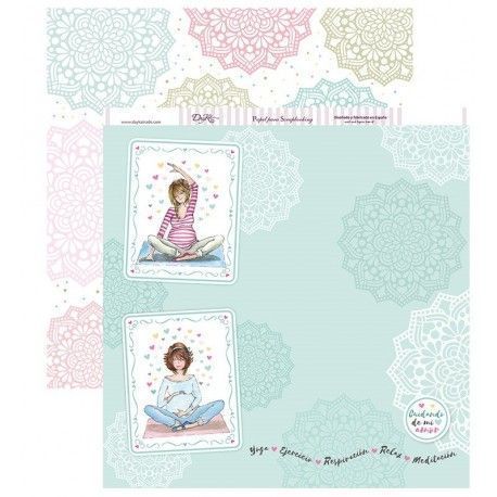 Papel Scrapbooking 30,5 x 30,5 cm. Colección "voy a ser mamá" de Dayka Trade. Diseño por las dos caras: a. imágenes de embarazada cuidándose; b. fondo de mandalas. Diseñado y hecho en España. Papel, de 224 gr, libre de ácidos y ligninas.