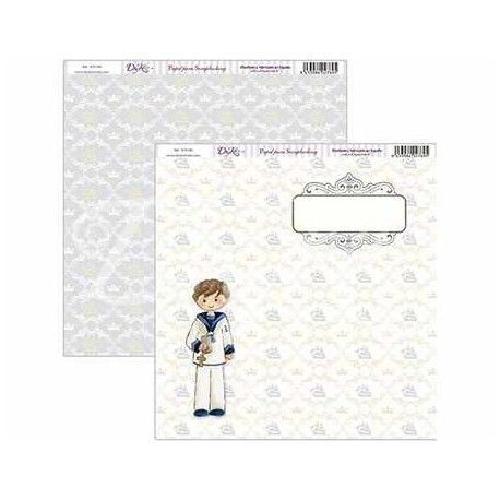 Papel Scrapbooking Comunión niña: puntos y flores. Dayka Trade. SCP-239
