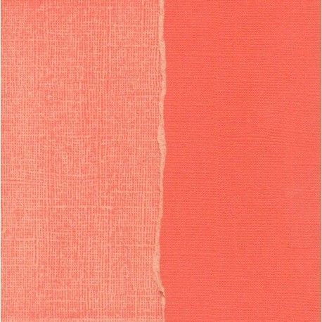 Color Flame. Papel básico, texturizado por una cara, para Scrapbooking. Como puedes observar en la fotografía, aparecen dos colores. El original, es la tonalidad más oscura y el tono claro, es el que corresponde al interior del papel que aparece cuando lo rasgas, embossas o lijas, por eso se llama Color Core, es decir, que tiene el interior con color, en lugar de blanco como sucede con otras marcas de papel básico de scrapbooking. Libre de ácidos