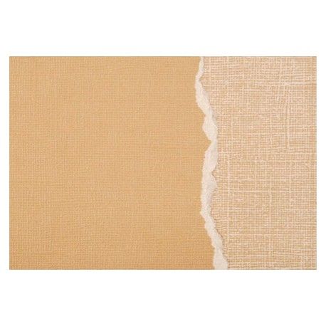 Color Sand Stone. Papel básico, texturizado por una cara, para Scrapbooking. Como puedes observar en la fotografía, aparecen dos colores. El original, es la tonalidad más oscura y el tono claro, es el que corresponde al interior del papel que aparece cuando lo rasgas, embossas o lijas, por eso se llama Color Core, es decir, que tiene el interior con color, en lugar de blanco como sucede con otras marcas de papel básico de scrapbooking. Libre de ácidos