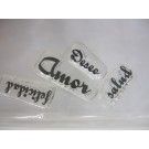 Sellos. 4 palabras: felicidad, deseo, amor y salud.